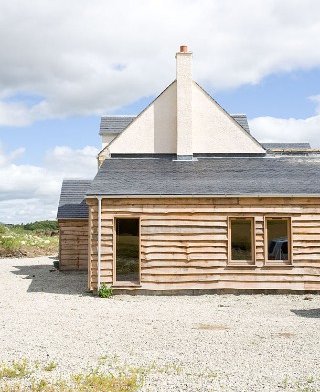 An extension to a traditional weavers cottage in Falkland more than doubles the size of the very small house, currently only a little more than 40 square meters. Designed to face south towards fantastic views of the Lomond hills, the house is turned upside down with living spaces on the first floor. With Planning constraints restricting the height, a steeply pitched, barrel vaulted roof, is used to create the maximum amount of space upstairs. Although the form is contemporary, traditional materials are used for the roof and walls including: ashlar sand stone, clay pan tiles and timber cladding.