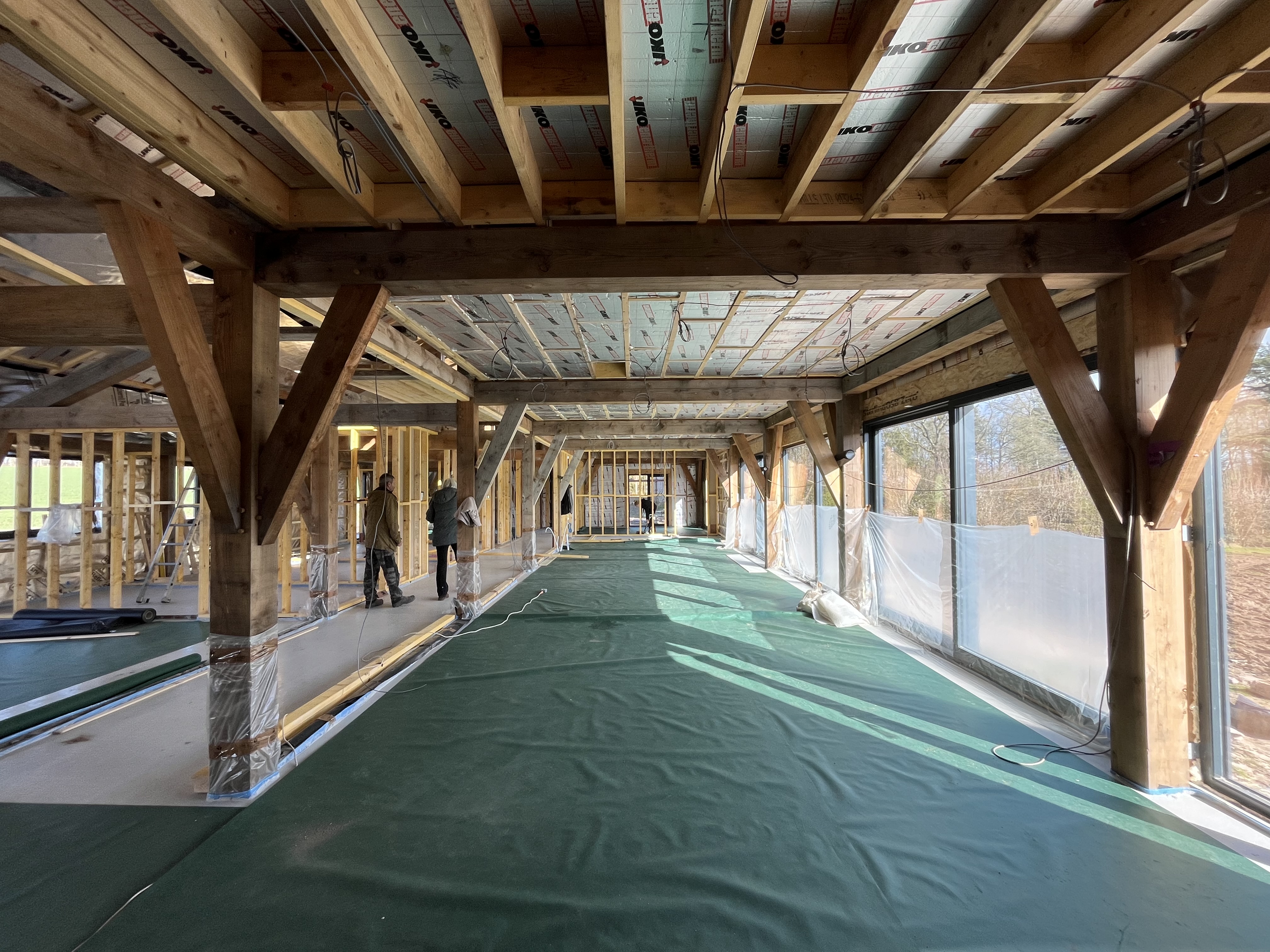 Below: Scruschloch Farm, Douglas Fir frame erected and the extension is taking shape.