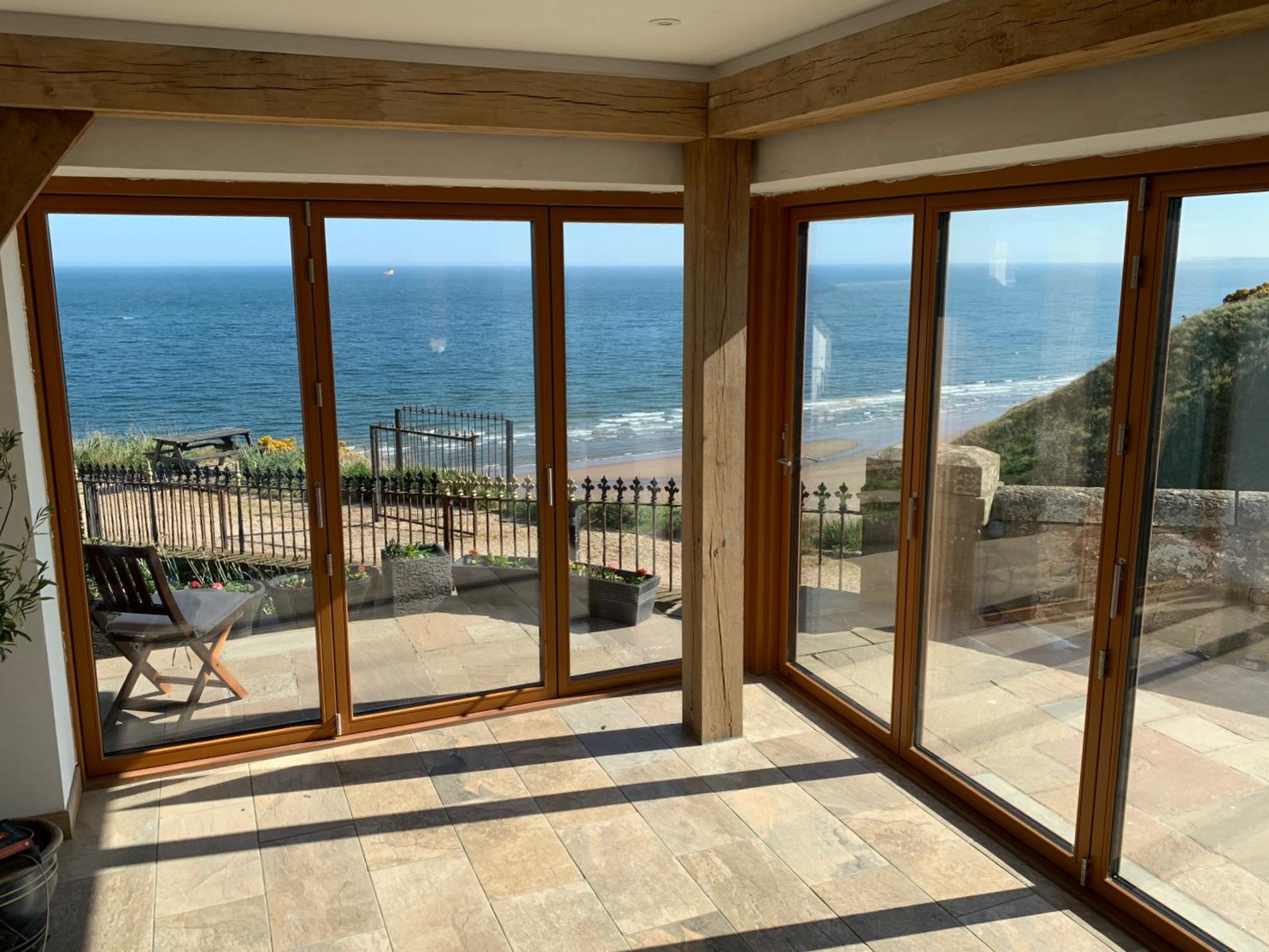Work is complete on a new balcony in Aberdour, Fife. With panoramic views over the Forth estuary and towards Edinburgh, a glass Qrail balustrade system was used, making the most of the views. Garapa decking was used for it's exceptional durability.